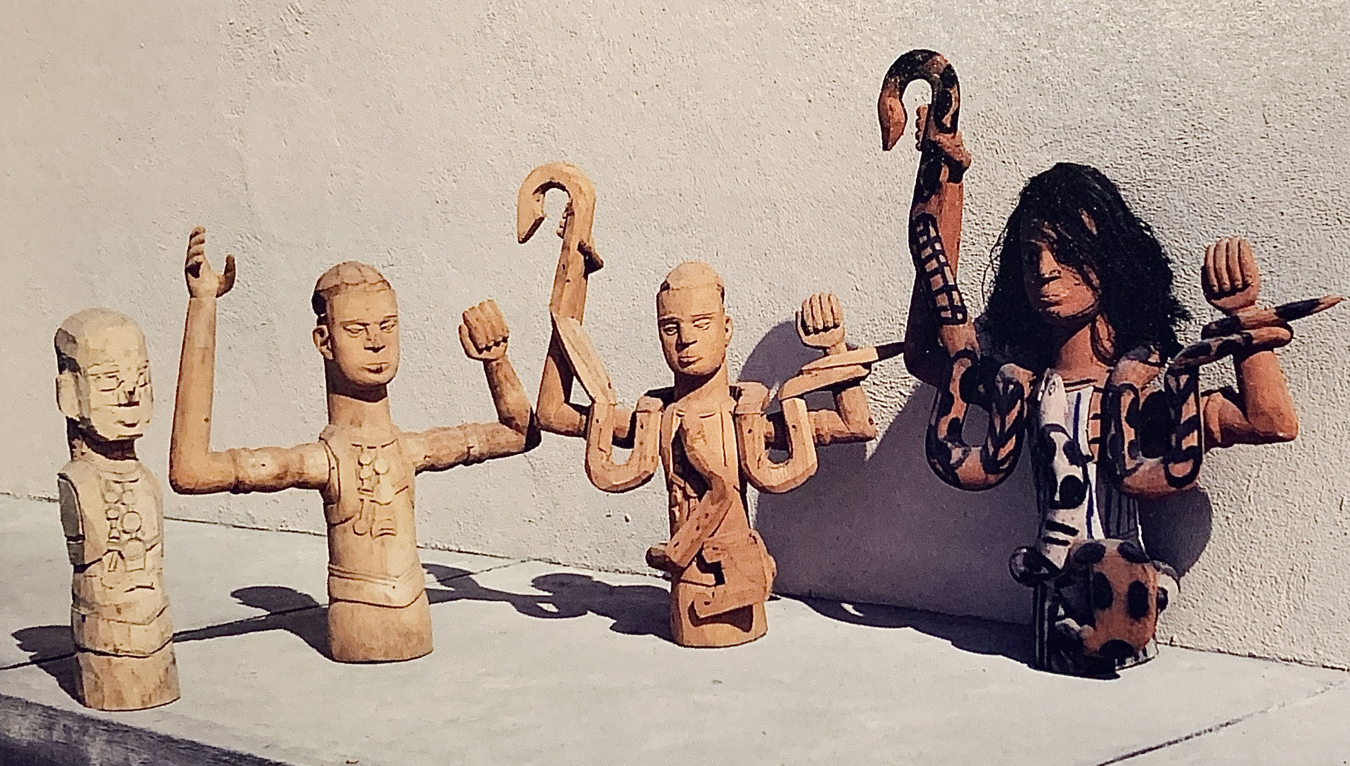 These figures are grouped to demonstrate the carving sequence followed by Akpan Chukwu and other members of his family. They were carved by Akpan Akpan Chukwu, son of the famous Annang carver Akpan Chukwu, and commissioned by the Oron Museum. Collection Oron Museum, Nigeria. Photographed by Jill Salmons, 1976.