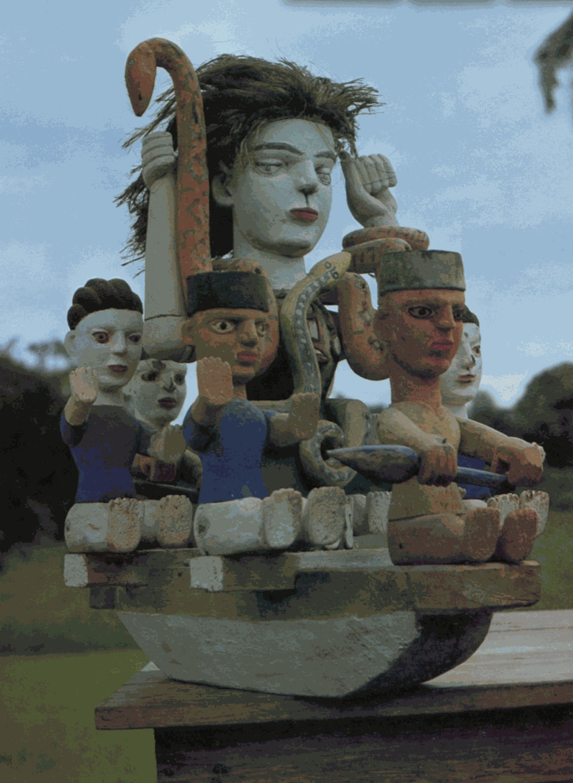 Mammy Wata group in a canoe, carved by Joseph Chukwu. Collection Oron Museum, Nigeria. Photographed by Jill Salmons in October 1976.