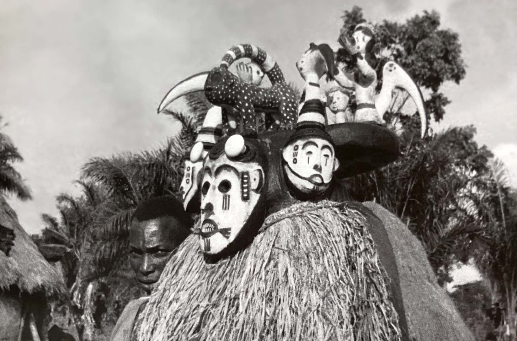 Oklenyi carved this large and complex platform mask in the 1950s. Roy Sieber saw and photographed it in 1958 and also purchased from the artist one of the mask’s figures, the woman with upraised arms (“lady praying in church”), which went to the Rockefeller collection at the Metropolitan Museum of Art. photograph by Roy Sieber, Olabochai village, 1958. Published in: Berns (Marla C.), Fardon (Richard), Littlefield Kasfir (Sidney) (ed.), “Central Nigeria Unmasked: Arts of the Benue River Valley”, Fowler Museum at UCLA, Los Angeles, 2011, p. 92, #A.9. When Kasfir saw the mask in 1978 no one recalled who had made it.