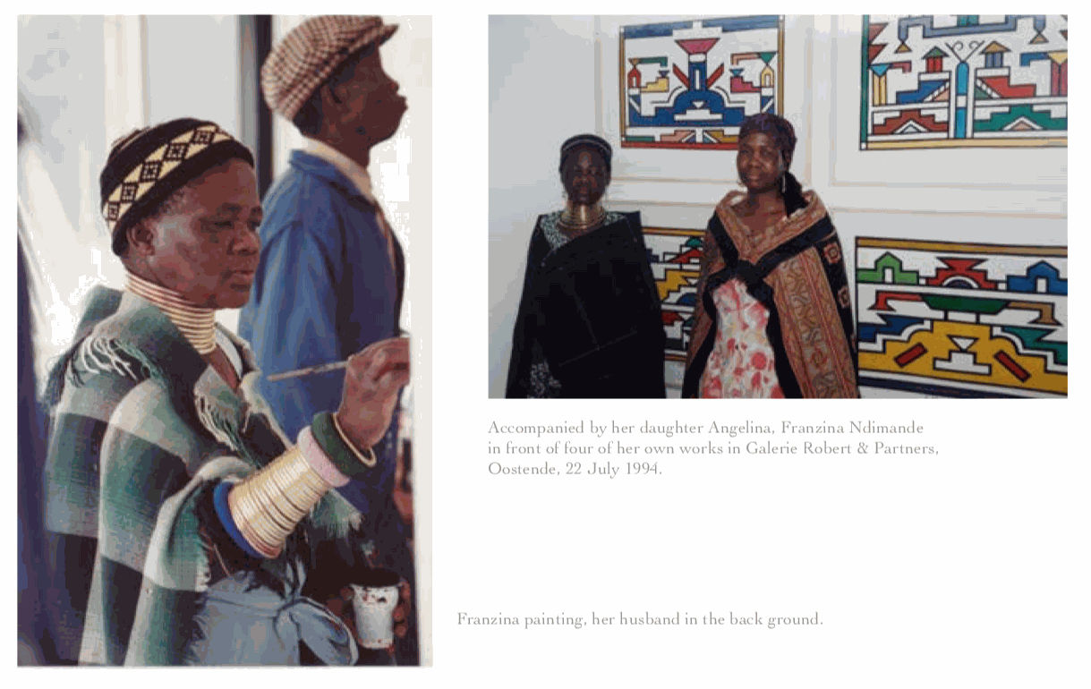 Earlier this year, the Brussels-Based Galerie Mestdagh organised an exhibition with works on paper by two other Ndebele artists, Francine Ndimande and her daughter Angelina. On the instigation of the famed Belgian dealer Alain Guisson (who left us too early last year), they transferred their traditional paintings to paper a few years before the British Airways campaign. A selection of these vibrant works was exhibited at the Mestdagh gallery. You can download their catalog and read the full story here.